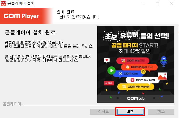Step7 설치가 완료되면 [마침] 을 클릭합니다. 그리고 동영상파일을 실행시켜 보시면 됩니다.