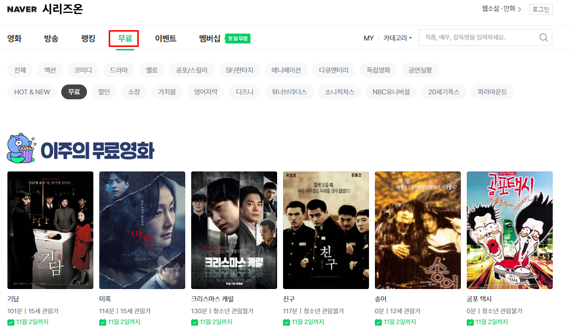 PC에서 네이버 영화를 무료로 볼 수 있습니다. 비록 최신영화는 아니지만, 그래도 볼만한 영화가 많이 있으니 참고바랍니다. 현재는 다운로드가 안되고 스트리밍으로 바로 시청할 수 있으니 참고바랍니다.
