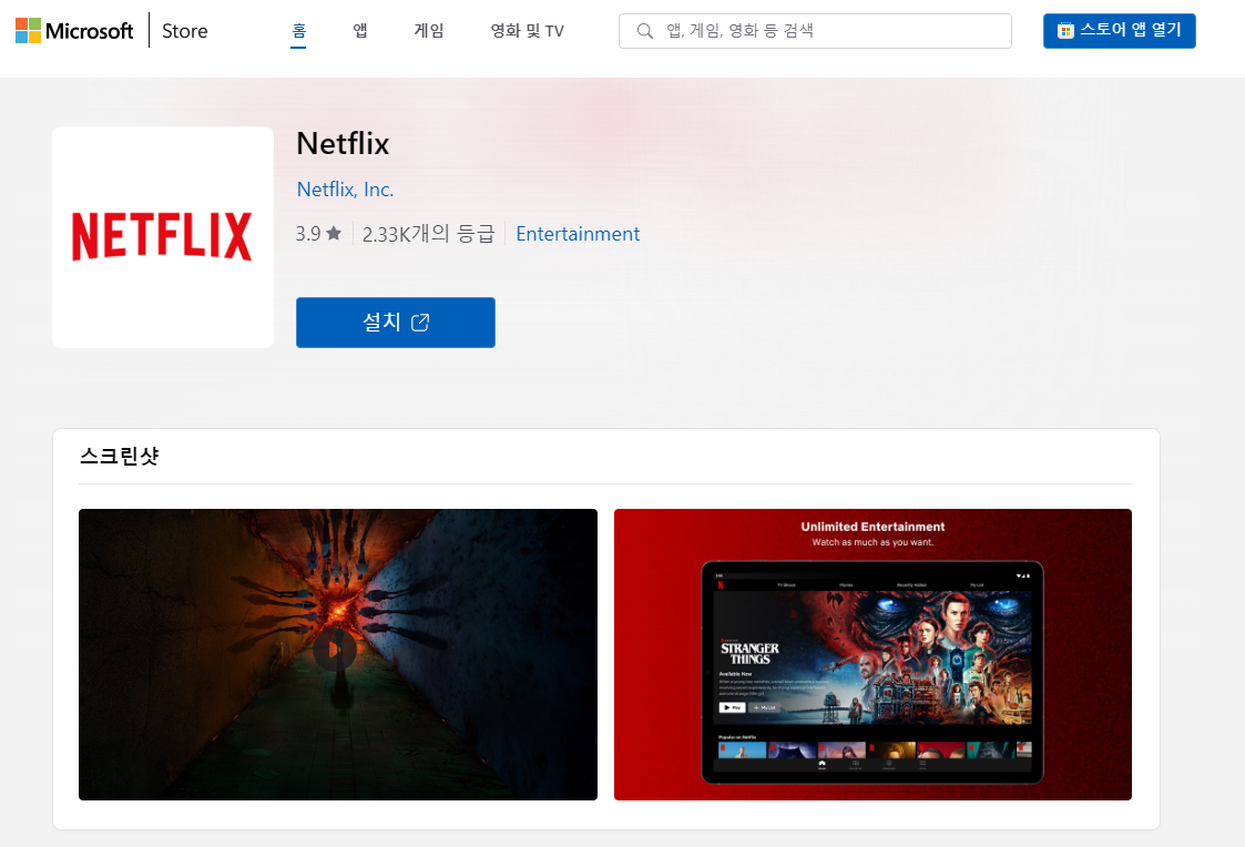 넷플릭스는 보통 홈페이지에서 시청할 수 있지만, 인터넷이 되지 않는 곳이라면 미리 넷플릭스 PC버전을 설치하고 저장된 영상이 있으면 볼 수 있어 매우 유용합니다. 아래 링크를 통해서 다운로드 및 설치하시면 됩니다.