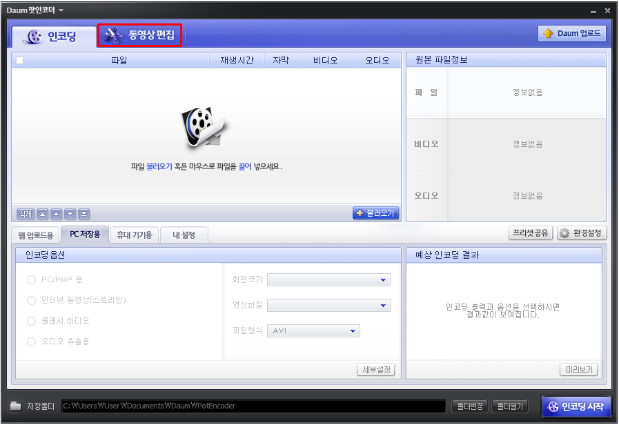 1. 다음팟인코더를 실행하고 [동영상편집] 메뉴를 클릭합니다.