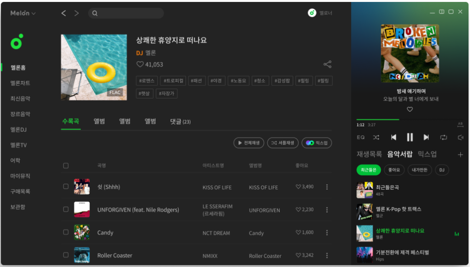 멜론 플레이어는 무손실 음악 재생을 지원하여, 고음질 음악 파일을 높은 품질로 들을 수 있습니다.