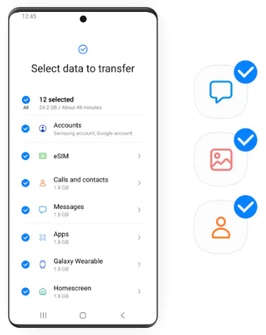 • 스마트 스위치는 사진, 동영상, 메모, 캘린더 일정, 기기 설정까지 포함한 다양한 유형의 파일을 새로운 갤럭시로 전송할 수 있습니다.