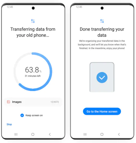 두 기기에 모두 최신 버전 스마트 스위치 앱이 설치되어 있는 확인하시기 바랍니다. 이 앱은 사전에 설치되어 있으며, 갤럭시 스토어에서 다운로드 할 수도 있습니다. 스마트 스위치는 안전한 데이터 전송을 위해 기기가 20%이상 충전되었을때 실행됩니다.