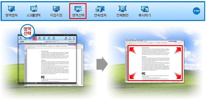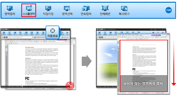 | 주요 기능 | • 영역캡쳐, 스크롤캡쳐, 직접지정 기능 • 영역선택, 연속캡쳐기능 • 복사하기, 전체 화면 캡쳐 기능 • 폴더열기 및 자동좌표 기능 • A인쇄하기 및 트레이메뉴 기능 |