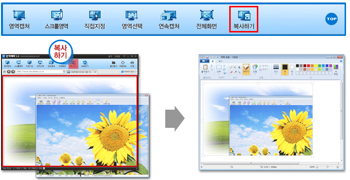 Ctrl+C키를 누르면 캡쳐 영역안 화면이 복사됩니다.