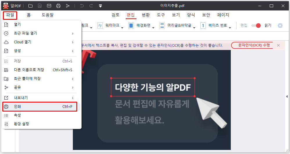 알PDF는 알툴즈에서 개발한 PDF 무료 뷰어/편집 프로그램입니다. PDF뷰어/편집기능 뿐만 아니라 이미지에서 텍스트 추출하는 OCR 기능이 있어서 아주 유용하게 사용할 수 있습니다. 아래 참고해서