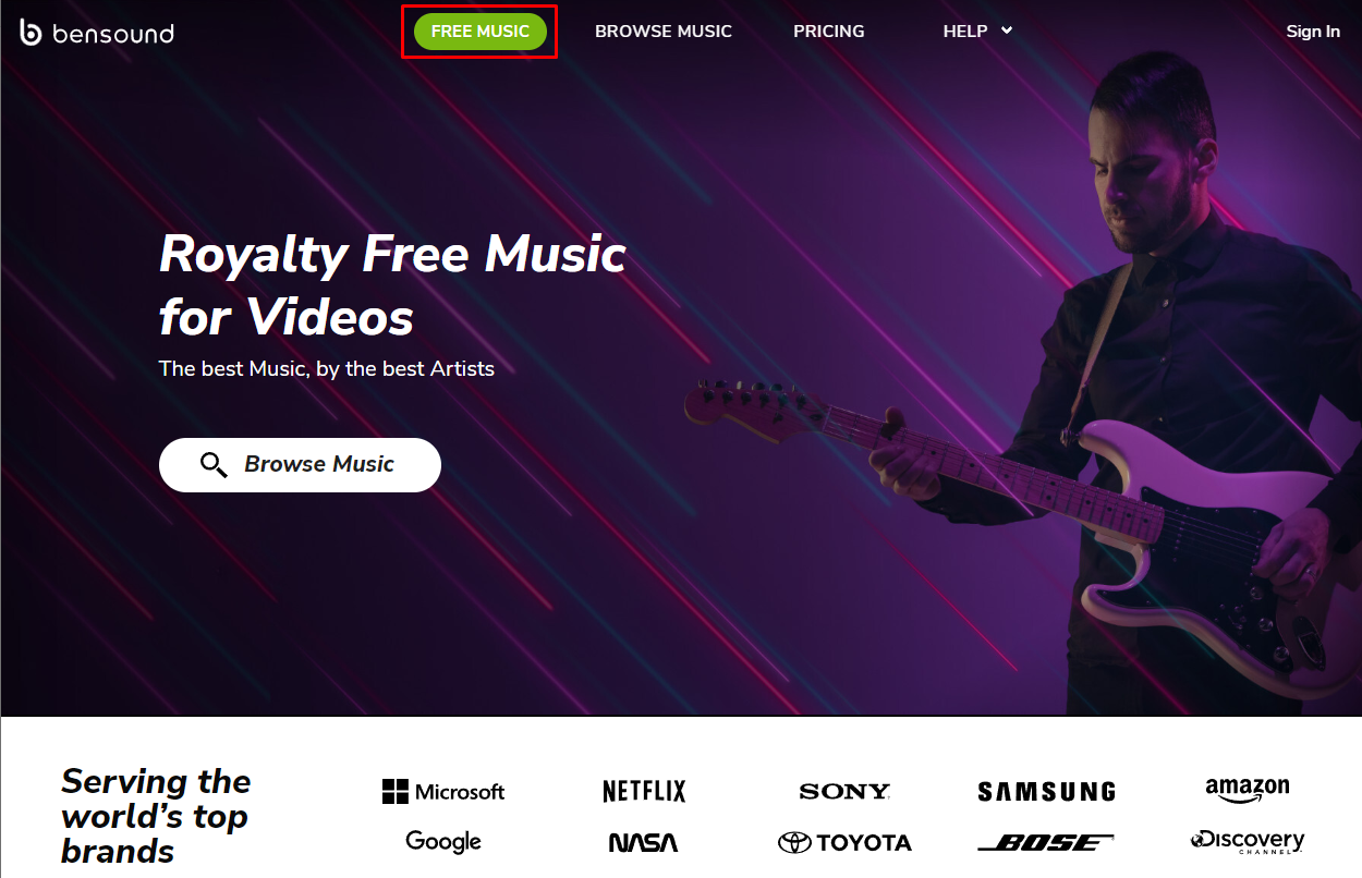 ⭕ 카테고리를 통한 음악 검색이 가능하고 FREE MUSIC 메뉴에서 무료로 음악을 다운로드 가능합니다.