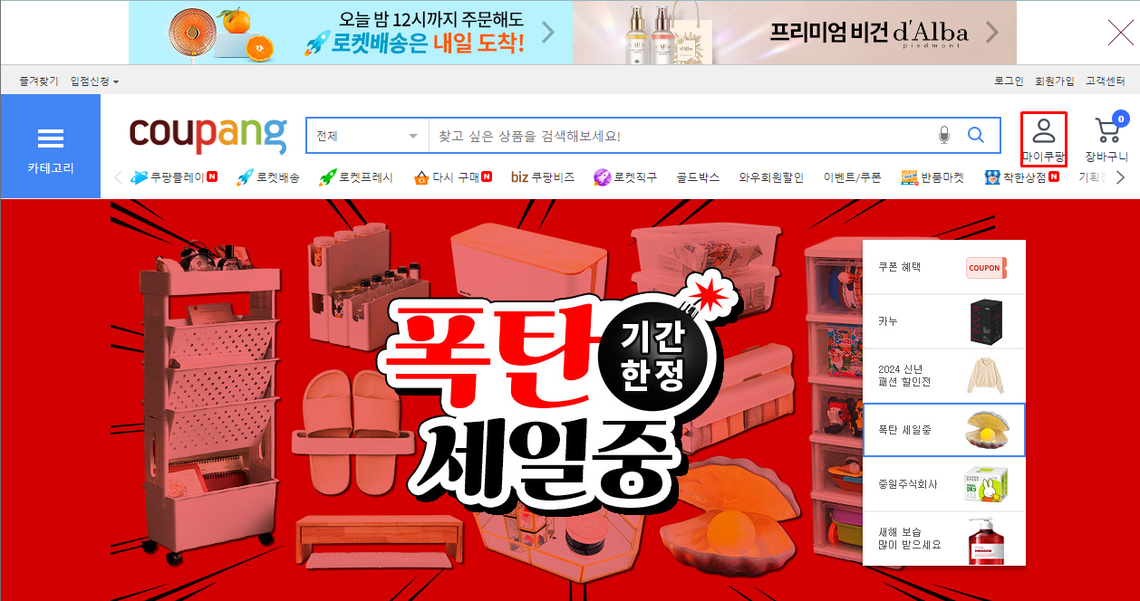 1. 쿠팡사이트에 접속해서 로그인합니다.