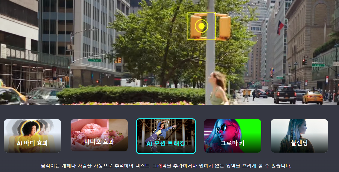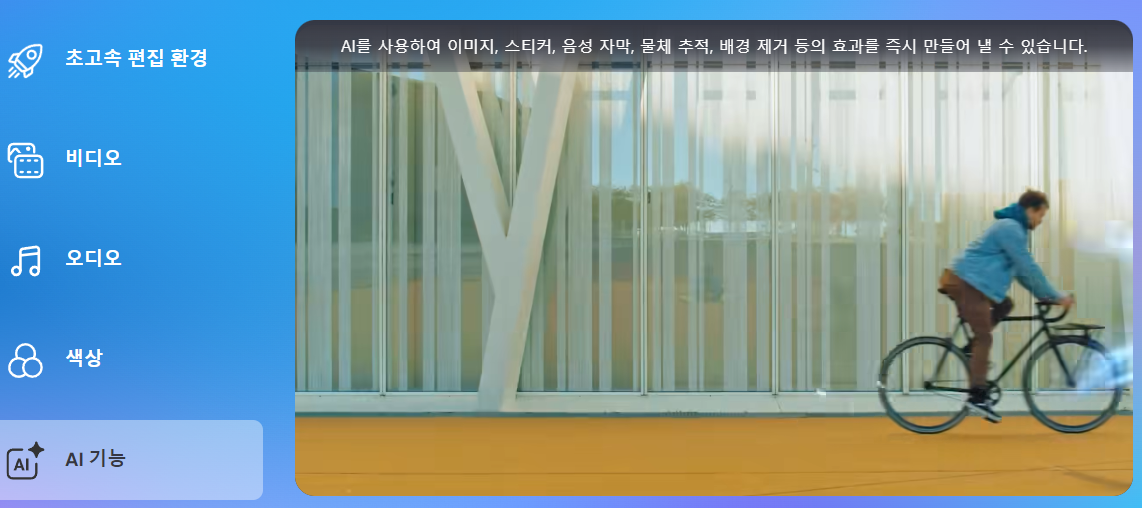 원클릭 컬럼 보정, AI기능으로 이미지, 음성자막 등 각종 인터페이스 구현