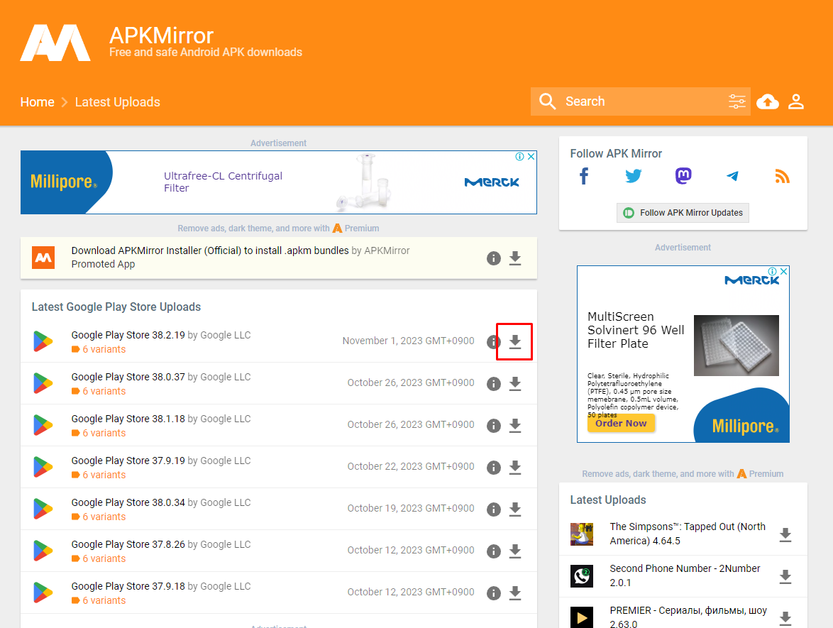 APKMirror 사이트에서 다운로드