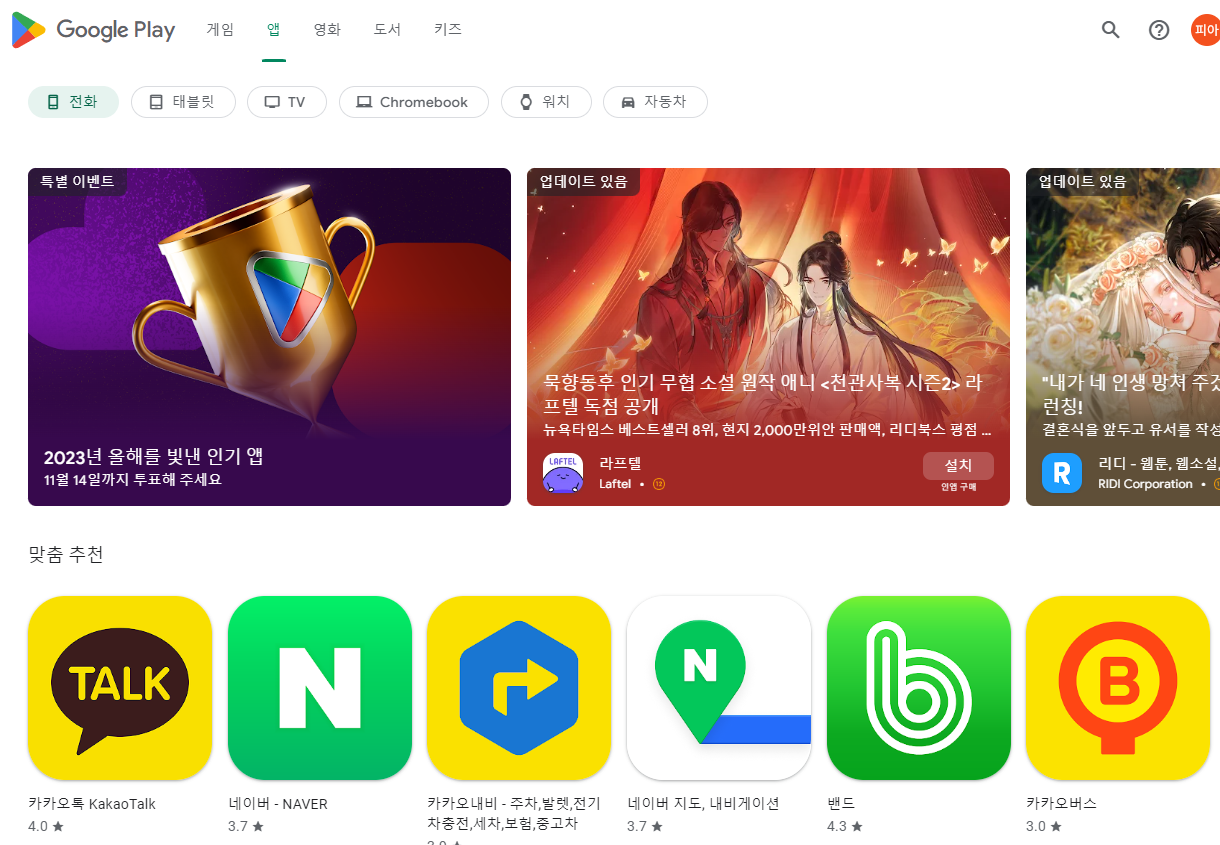 구글플레이 홈사이트에서 다운로드