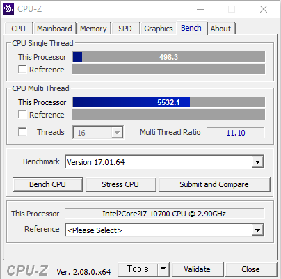 CPU-Z는 내 컴퓨터의 사양정보인 CPU, 메인보드, 메모리, SPD, 그래픽카드의 상세정보를 한 눈에 확인할 수 있습니다. 그리고 추가로 Bench 탭에서는 CPU성능 및 스트레스 수치를 확인할 수 있습니다.