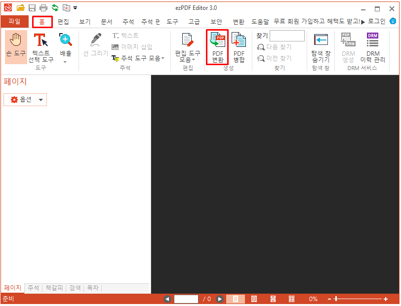 1) ezPDF Editor 3.0 을 실행한 후 [홈 > PDF변환] 을 클릭합니다.