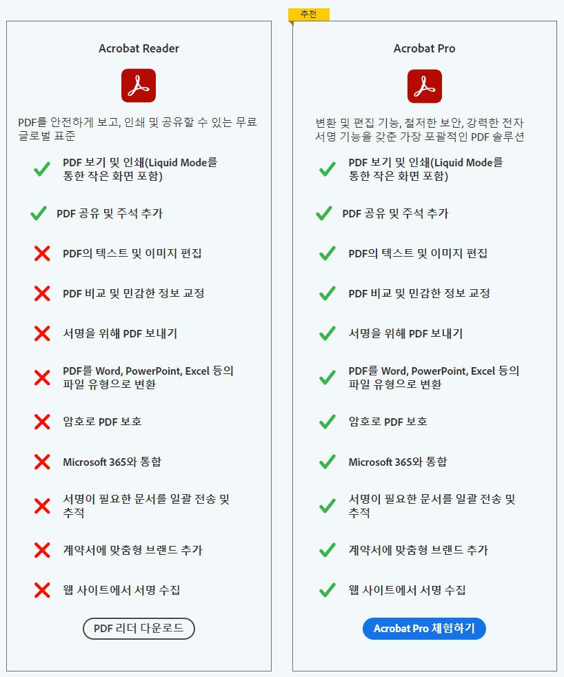 PDF 뷰어 및 Pro 기능 비교