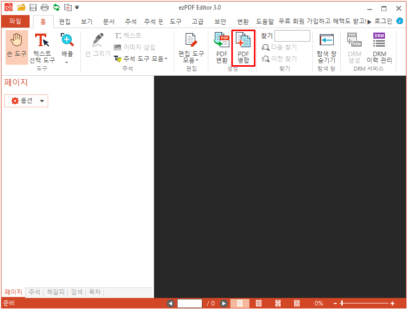 1. ezPDF 에디터를 실행해서 [PDF 병합] 기능을 선택합니다.