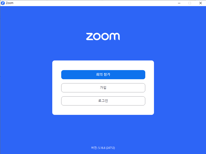2. 설치가 완료되면 ZOOM 접속화면이 뜹니다. 회의 참가를 버튼을 클릭합니다.